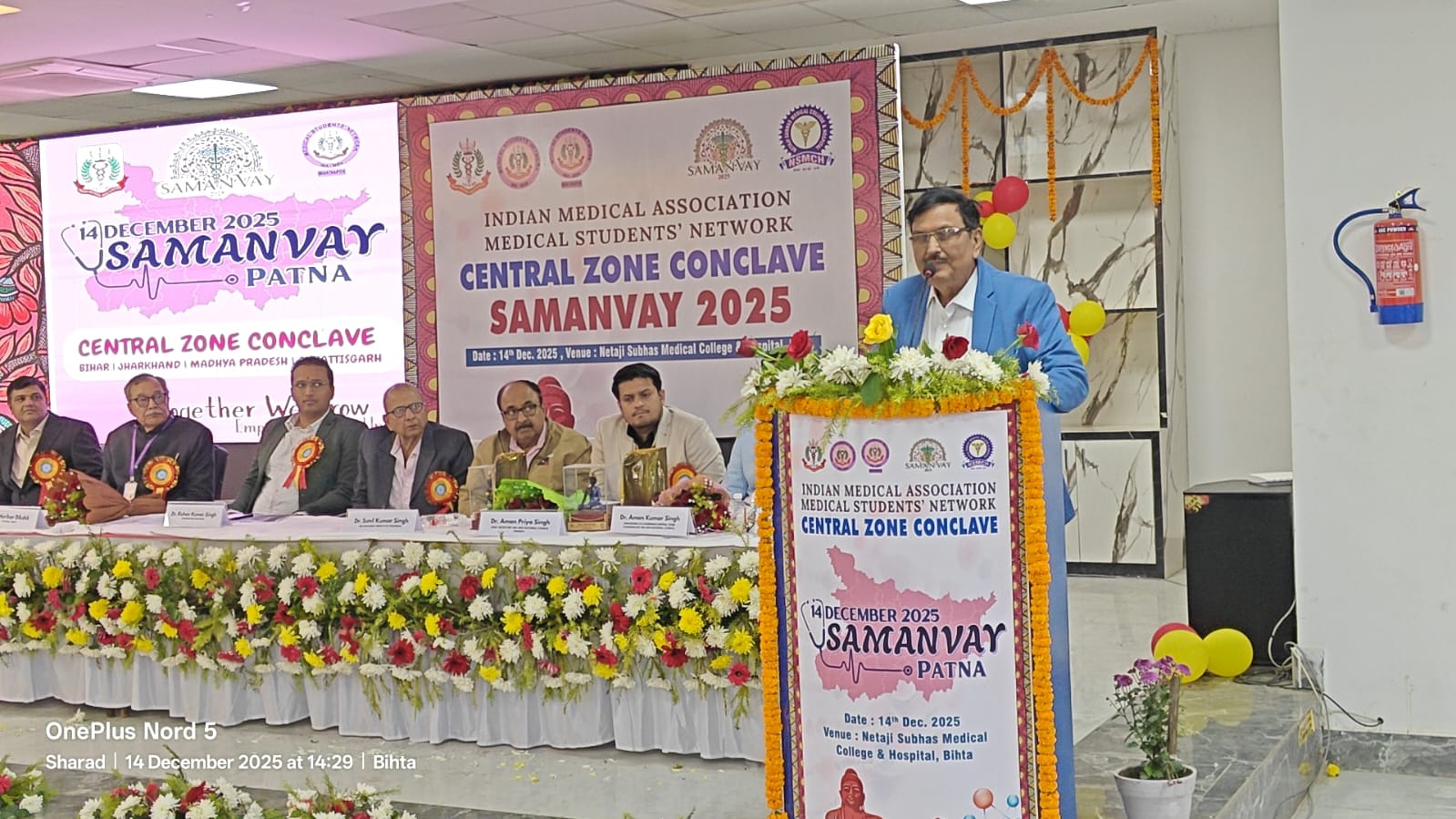 Patna: The Indian Medical Association Medical Students’ Network (IMA MSN) successfully organised SAMANVAY 2025, the Central Zone Conclave, on 14th December 2025 at Netaji Subhas Medical College & Hospital (NSMCH), Bihta, Patna, hosted by IMA MSN Bihar. The conclave brought together 350+ medical students and interns from 8 different states including states of Bihar, Jharkhand, Madhya Pradesh, and Chhattisgarh etc. promoting leadership, unity and professional growth under the theme “Together We Grow – Empower, Inspire, Unite.”