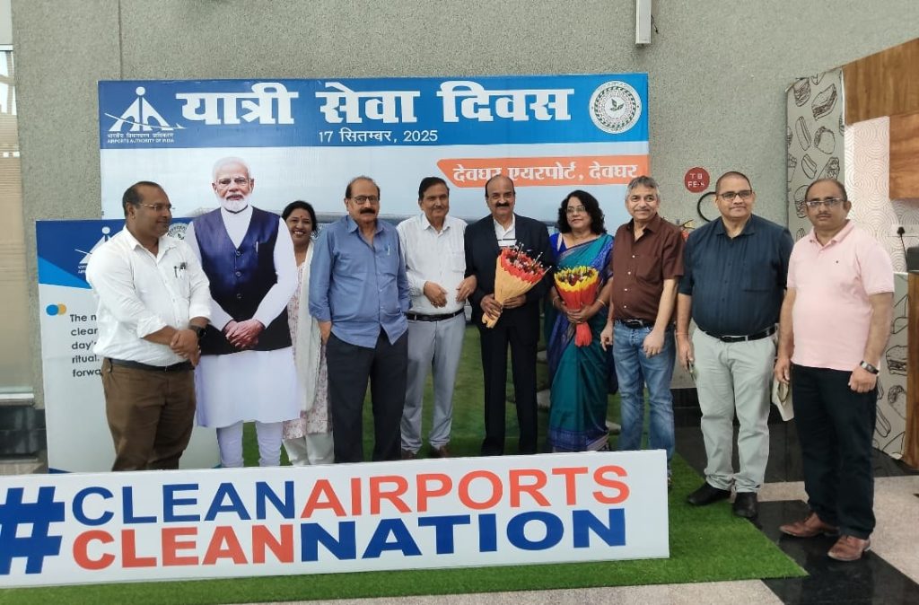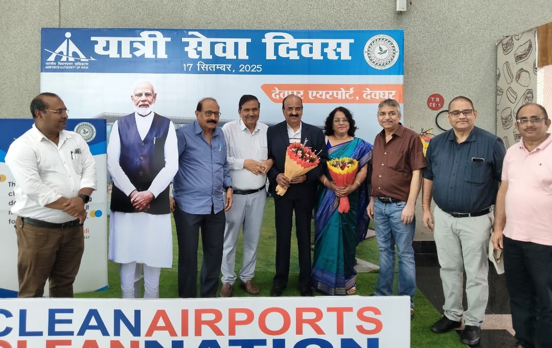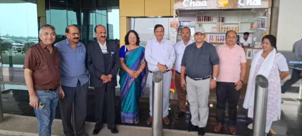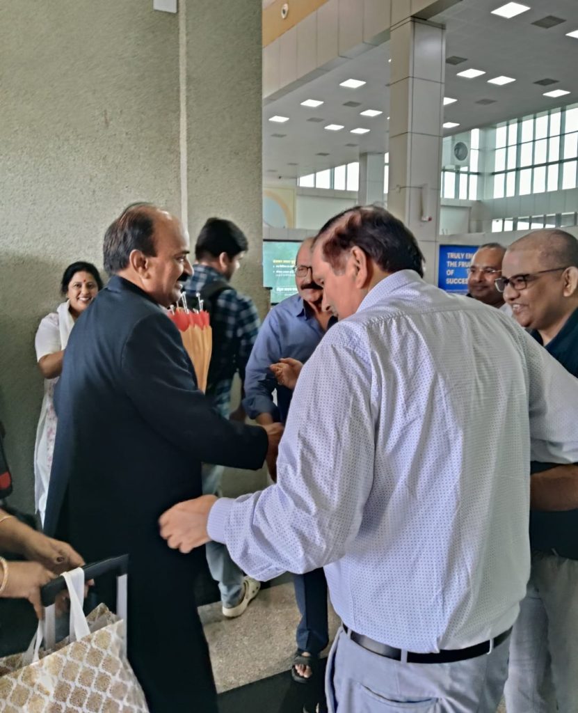 Warm welcome of Dr. Dilip Bhanushali sir IMA National President and Dr Sarbari Datta ma’am by Dr Sahajanand Pd Singh past national president of IMA at Deoghar airport on 21st September 2025